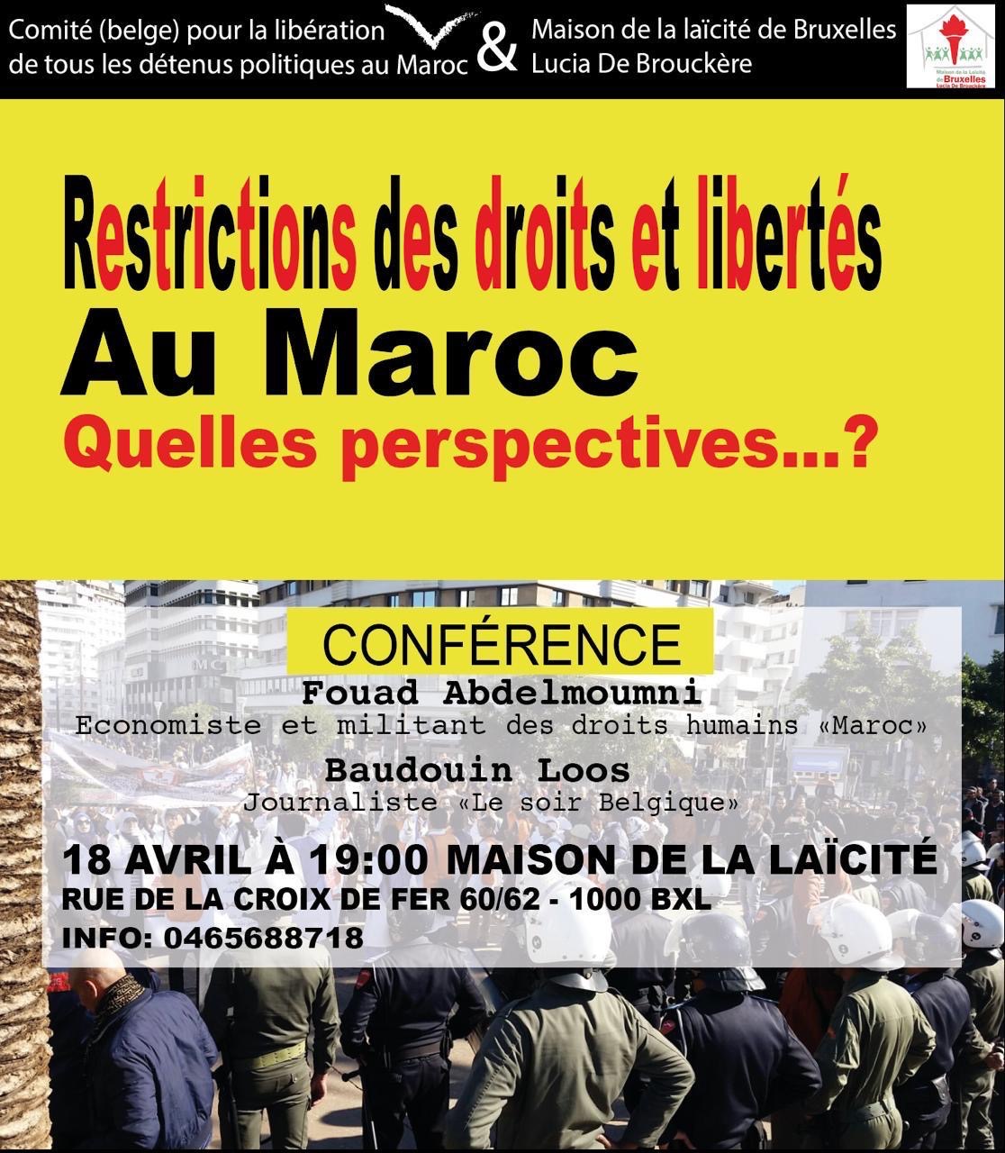 Bruxelles : Conférence-débat : "Les restrictions des libertés au Maroc"